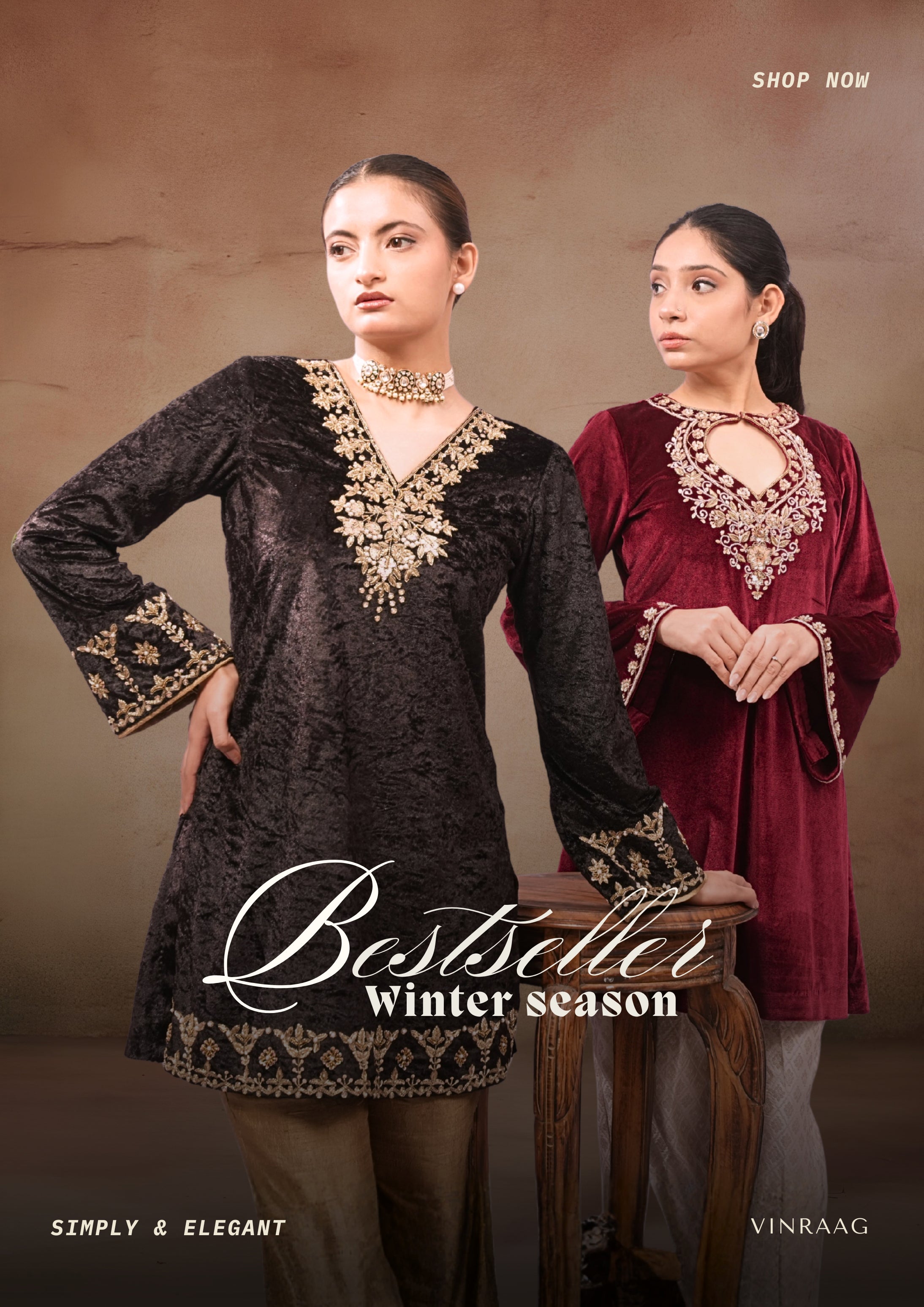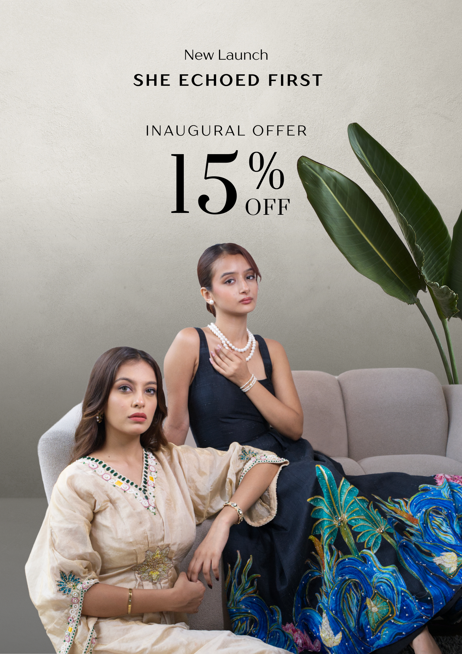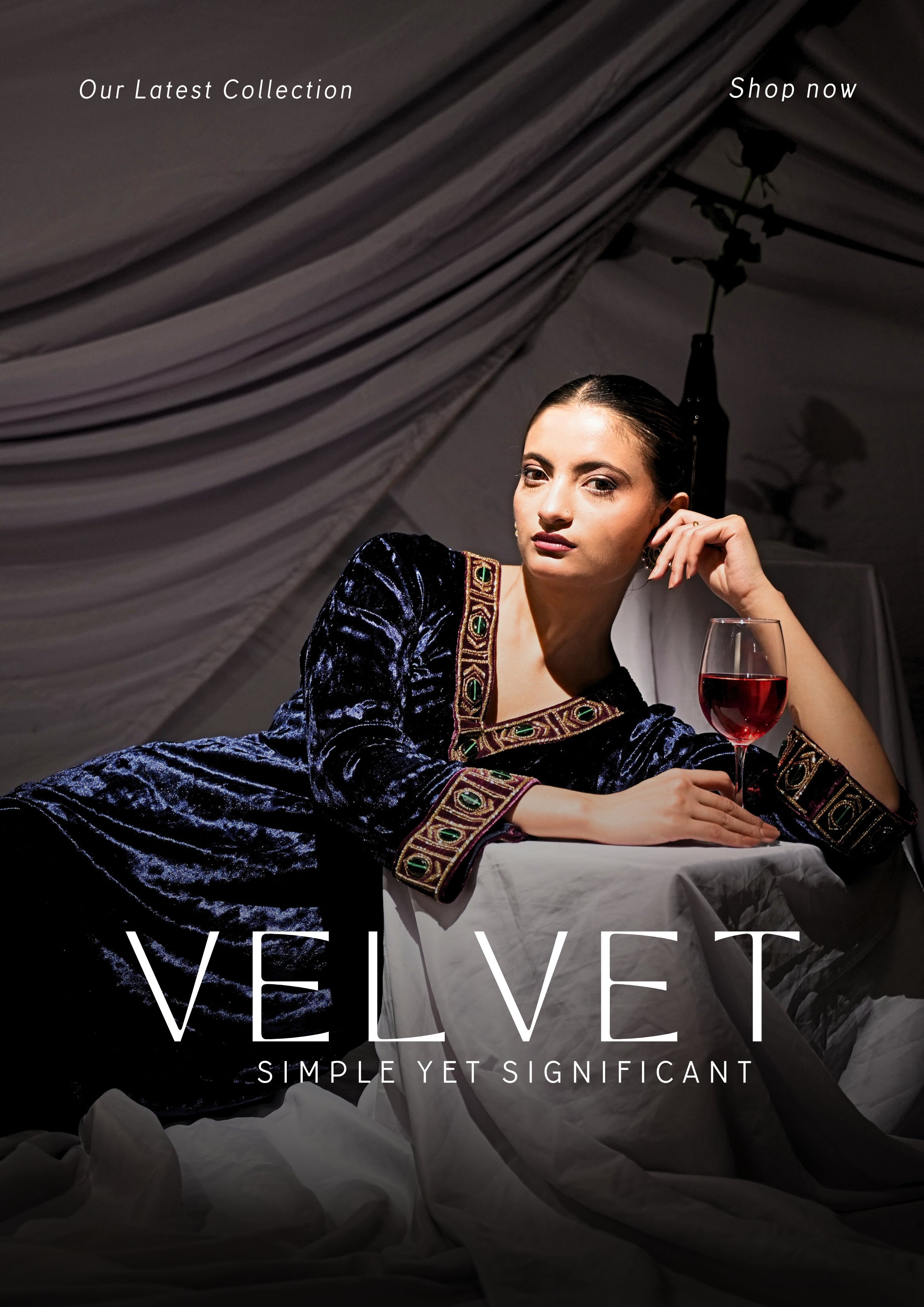 We honor ancient techniques —zardozi filigree, chikankari embroidery,hand‑woven pieces of fabric—then translate them into silhouettes that feel intricate yet minimal, regal yet effortless, rich yet deliberately restrained.