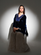 A regal royal-blue silk velvet tunic designed with a beautifully panelled neckline featuring brocade and delicate lace, creating a rich, structured frame. The sleeves and hemline are adorned with refined lacework, adding a touch of elegance and softness to the silhouette. The torso showcases exquisite sequin and cut-dana motifs, intricately arranged to bring depth, shimmer, and artisanal charm to the ensemble. Hand-finished with precision, this piece is a celebration of heritage craft and elevated contemporary design.